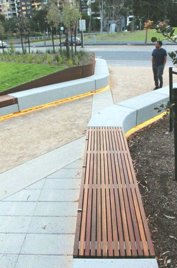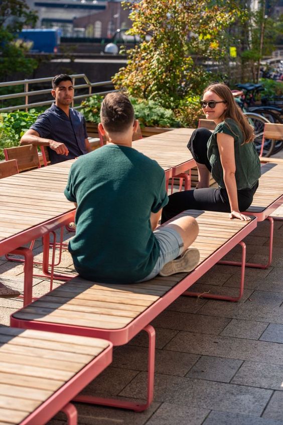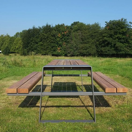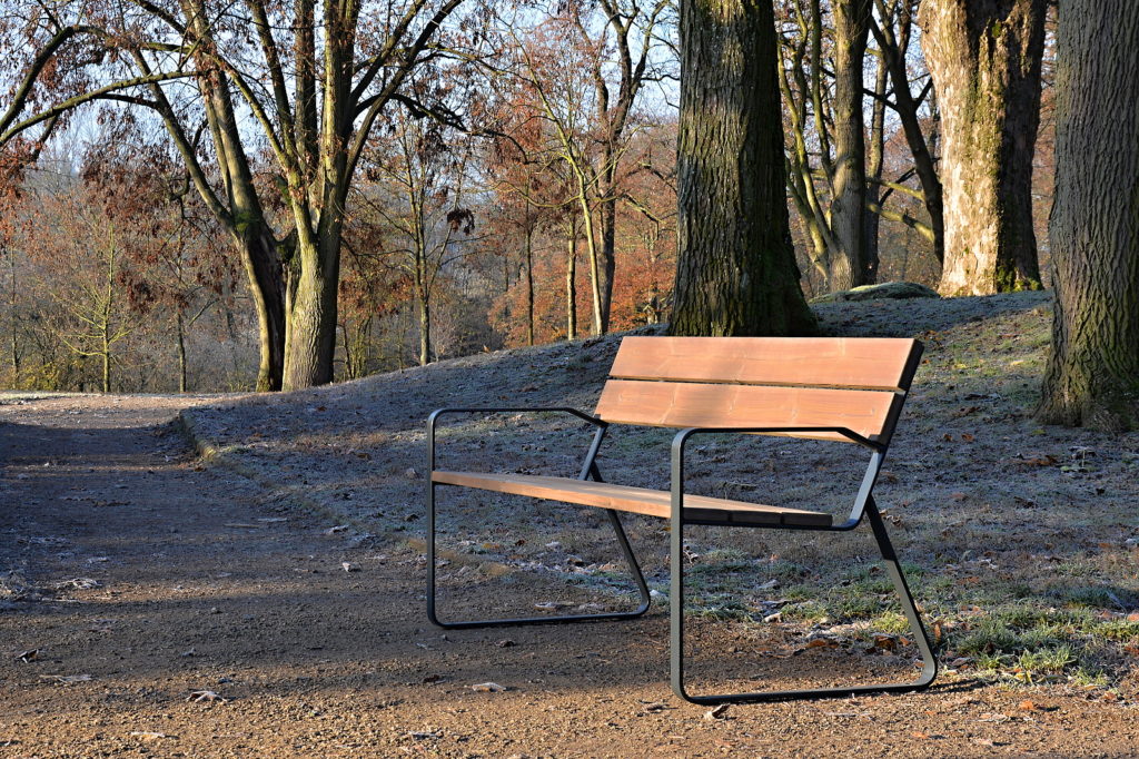 Všechny navrhované prvky mobiliáře propojuje jednotná kombinace materiálu – kov, dřevo a beton.