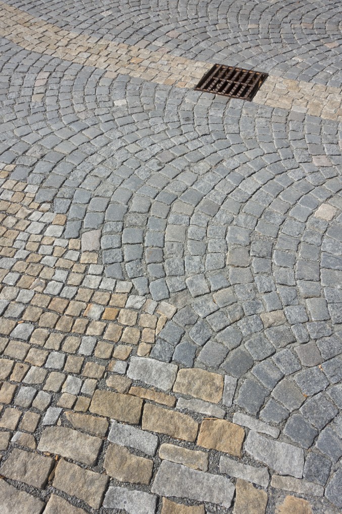 inspirace - přechod různých typů kamenných dlažeb