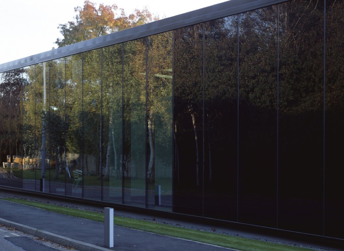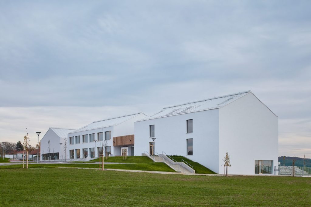 Jako materiály v exteriéru je použita kombinace zasklení a dřevěného obkladu. Přízemí jako transparentní část vynáší dřevem obloženou část patra.  Svým tvaroslovím a použitými materiály koresponduje navrhovaná budova s podobou nového obecního úřadu.