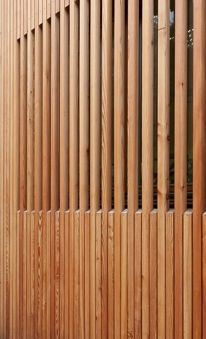 dřevěná laťová fasáda - detail okna