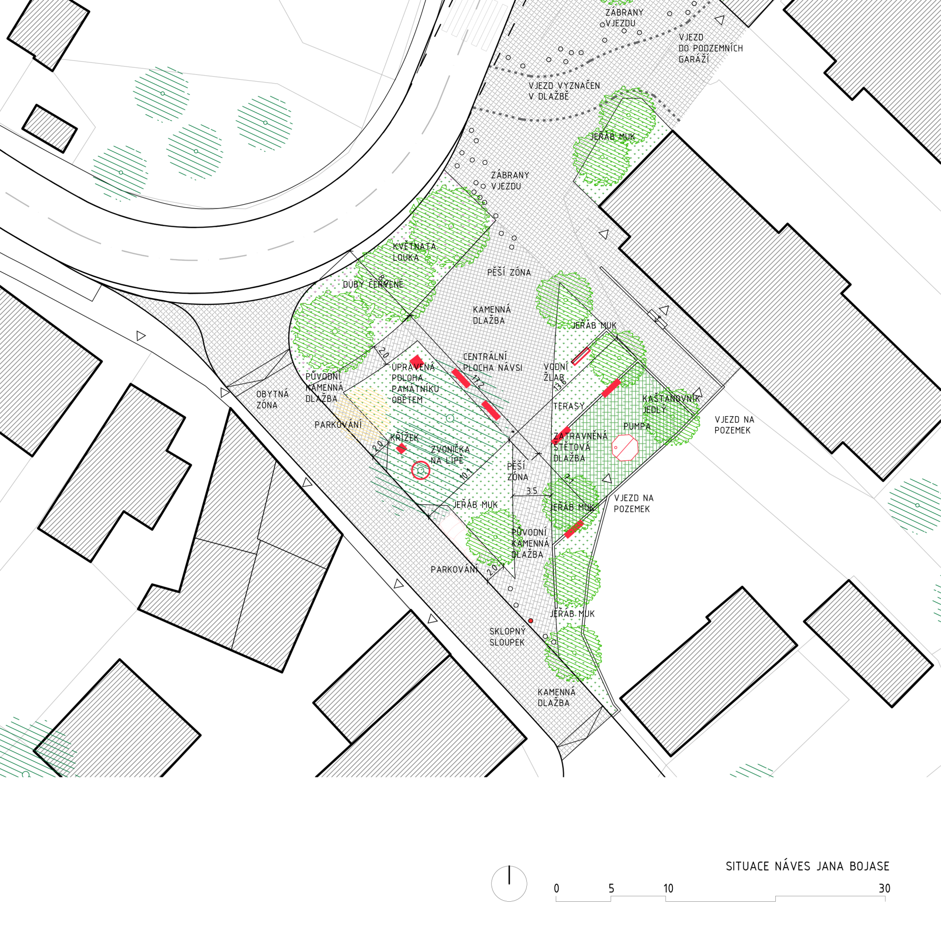 Náves J. Bojase - stav