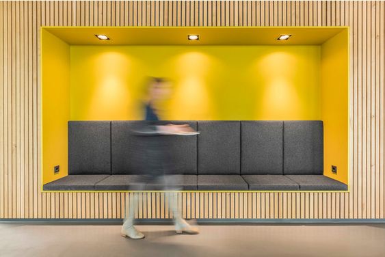 Při schodišti je vymezená prostorová rezerva, která se dá využívat jako komunitní prostor – čekárny jsou totiž odděleny dělícími dveřmi.